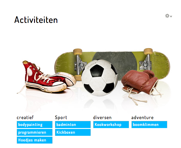 ich will eine übersichtsseite mit den einzelnen aktivitäten zeigen
