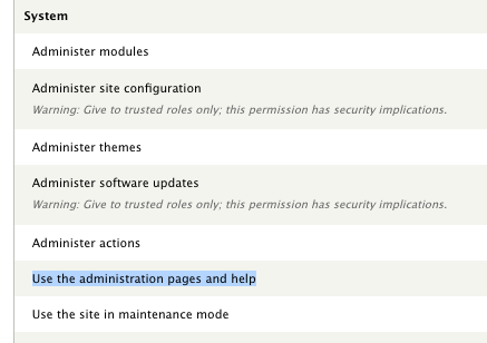 Eine andere Frage war noch dass wenn man als Gast oder Authentifizierter Benutzer eingeloggt ist, dass man die "Hilfe" in der Administrationsleiste nicht mehr sieht.