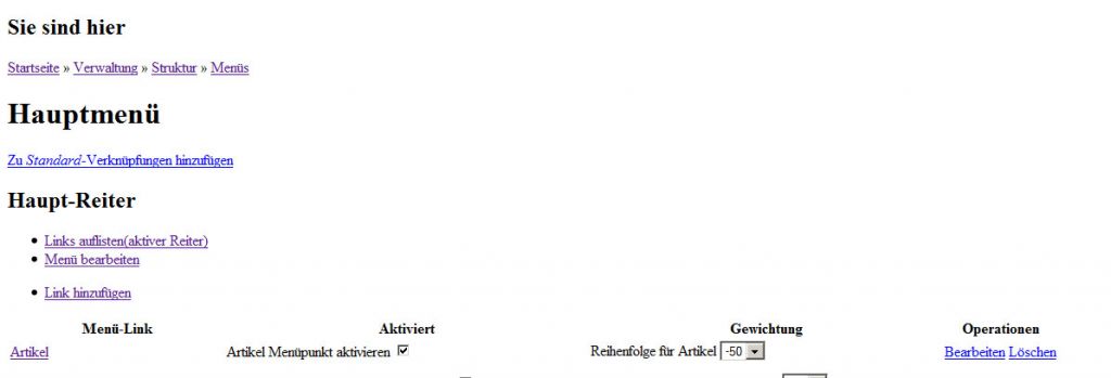 Gelöst: admin/structure/menu/manage/main-menu - Plötzlich nur noch Skelett