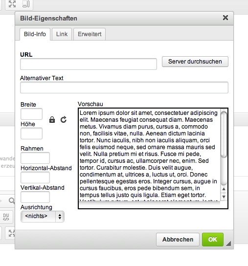 wenn ich ein Bild hinzufügen möchte kein "Server durchsuchen" angezeigt, wie wenn ich als Admin angemeldet bin.