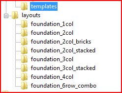 Der Ordner Layouts kommt von Display Suite und wird benutzt um die Nodeansichten zu basteln. die block.tpl.php und die page.tpl.php liegen bei im Ordner Templates, wie im Screenshot zu sehen.