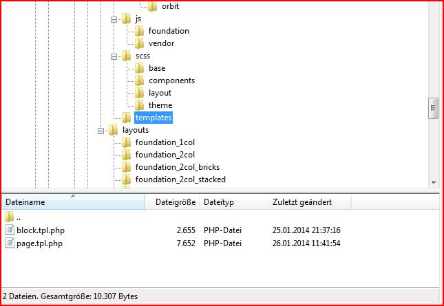 Kannst du noch einen letzten Screenshot machen, wo man deine Versionen der block und page tpl sehen kann und die Überordner?