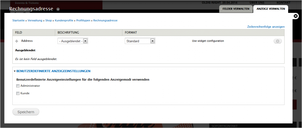 Beim Punkt Rechnungsadresse/Versandandresse hänge ich aber immer noch. Ich hab mal unter dem von dir beschriebenen Pfad (/customer-profiles/types/billing/display) nachgeschaut. Es gibt hier jeweils bei billing und shipping ein angelegtes Feld: