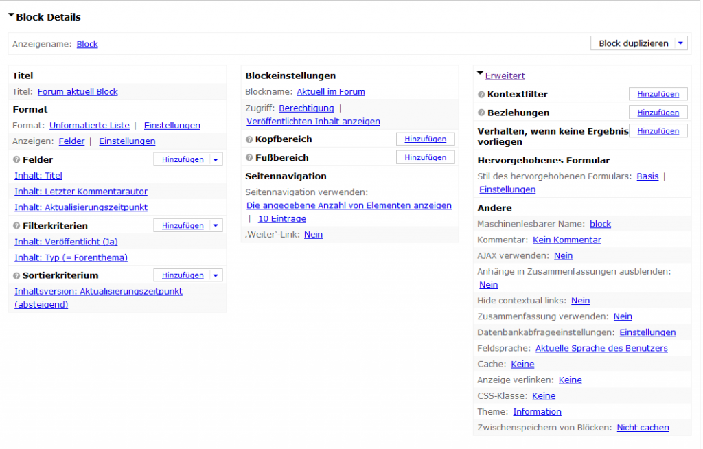 ich habe mittels Views einen Block erstellt, welcher mir den Titel eines Forenbeitrags sowie den Namen des letzten Kommentators samt Zeitstempel anzeigen soll. Ich habe den Block erstellt und er schien auch das richtige anzuzeigen.