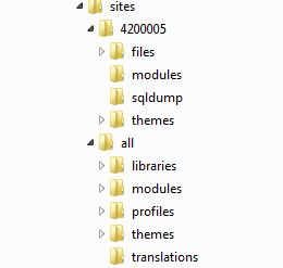 Ich habe einen Seitenexport einer Drupalseite (Version 6). In dem Export befindet sich ein Ordner mit sites in dem Ordner befinden sich ein Ordner \all und einer mit dem Namen unser HP. Ebenfalls habe ich einen Datenbankexport.
