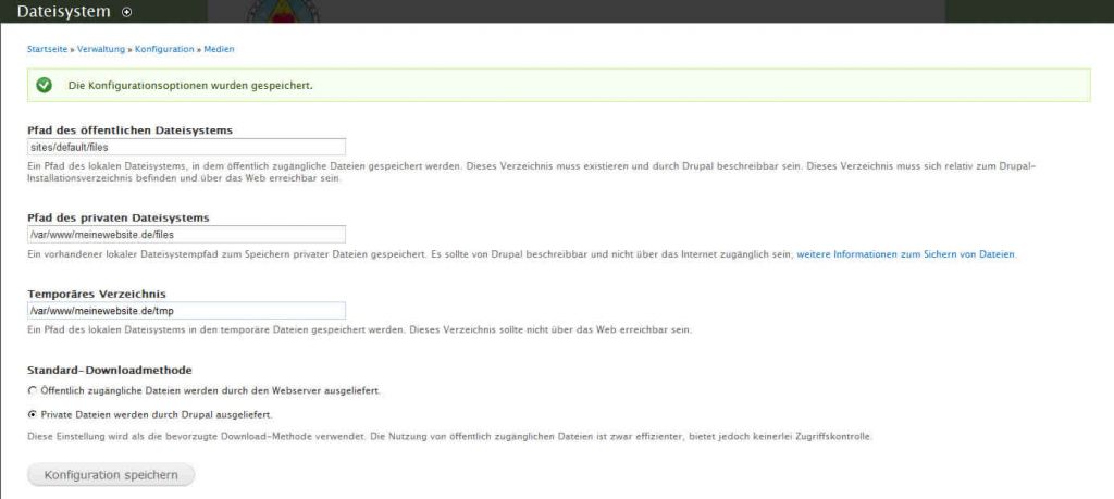 Gestern habe ich mir Drupal Commerce installiert. Damit man auch Dateien erwerben kann, habe ich ein "privates" Verzeichnis parallel zu meinem öffentlichen Web-httpdocs-Verzeichnis erstellt, im Dateisystem unter admin/config/media/file-system angegeben, und es files, um zu verhindern, dass einer das Downloadverzeichnis errät. Gut soweit.