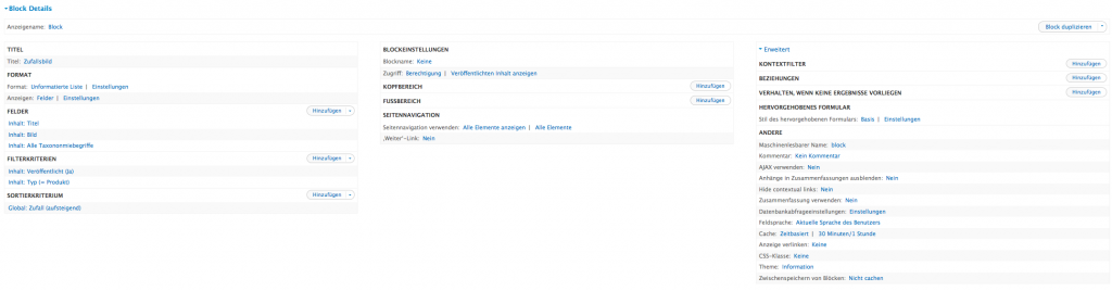 Dann musst Du natürlich in Views 2 (Zufallsbild) unter "Items" -> eins/1 einstellen damit nur ein Werk angezeigt wird und unter "sort criteria" -> "Global: Random" nicht vergessen