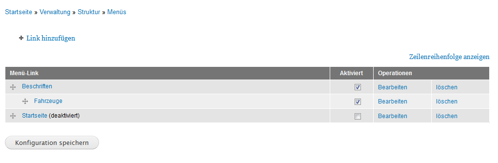 In der Menüliste admin/structure/menu/manage/main-menu erscheinen die beiden Menüpunkte in der richtigen Ordnung (siehe Anhang Menü_1.png)