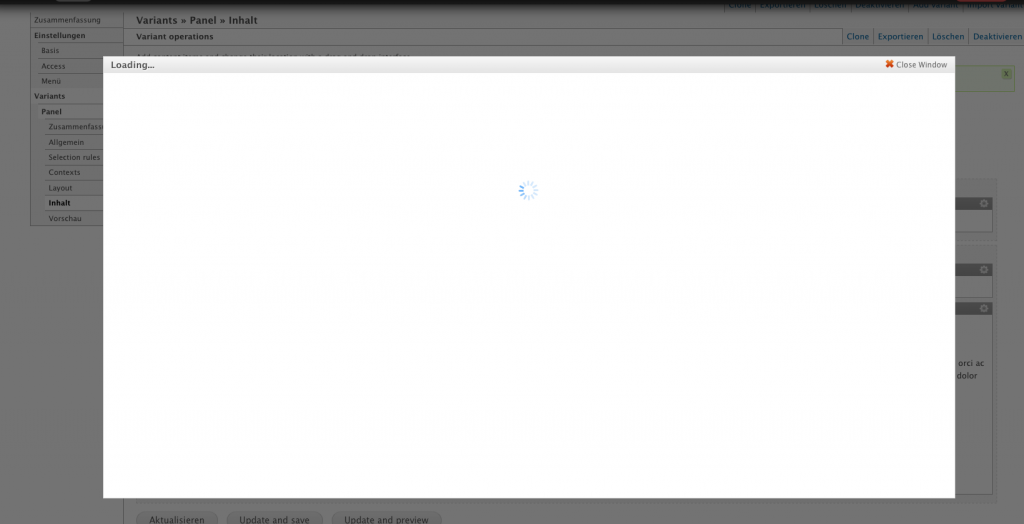Wenn ich jedoch den Inhalt beabeiten möchte - öffnet sich ein bearbeiten Fenster, welches nicht mehr aufhört zu laden (siehe Screenshot)