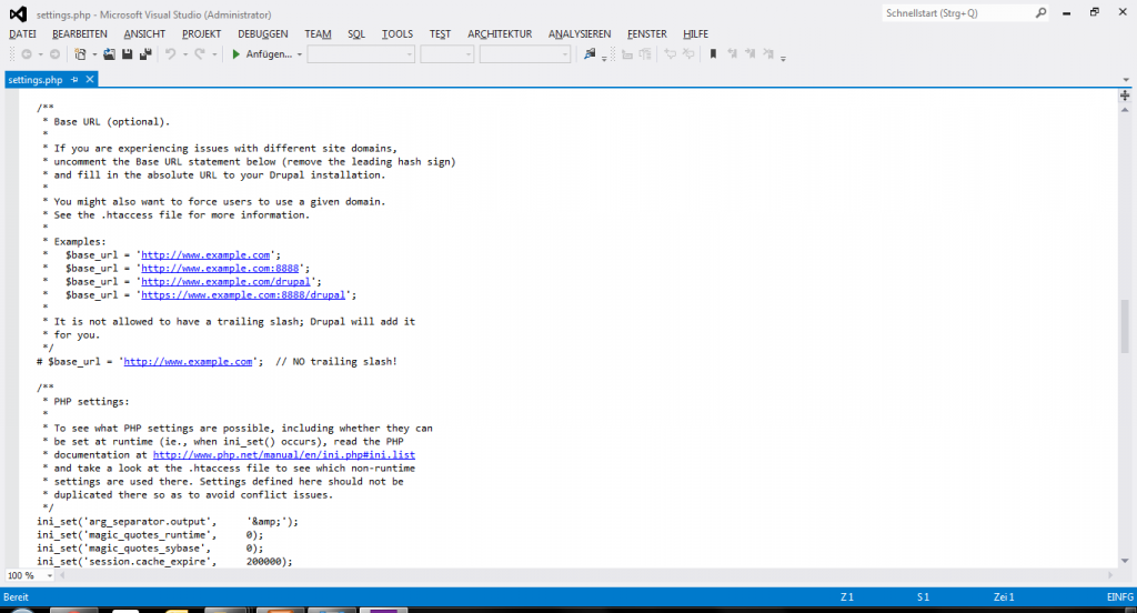 Die settings.php liegt also in dem Verzeichnis: xampp/htdocs/instant/sites/default/settings.php