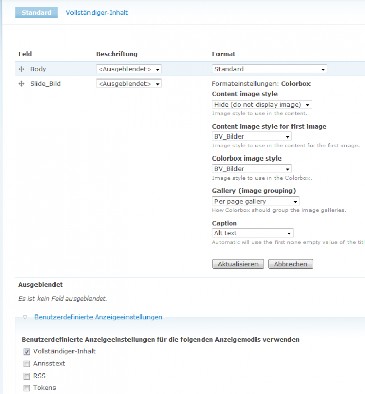 Dann habe ich in admin/structure/types/manage/seite-mit-bildern/display die Einstellungen so geändert, wie Du sie im Anhang siehst. Eine "galerie pro node" habe ich nicht gefunden, aber in Gallery (image grouping) gibt es ein Per page gallery. Hast Du das gemeint?