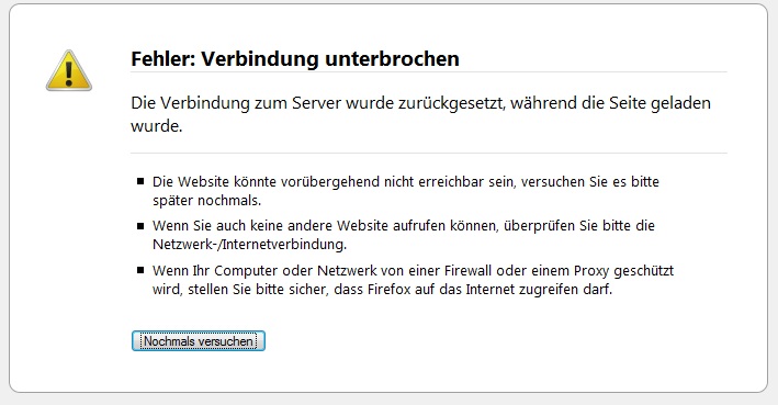 Die komplette Fehleranzeige im roten Rahmen beinhaltet diesen Text: