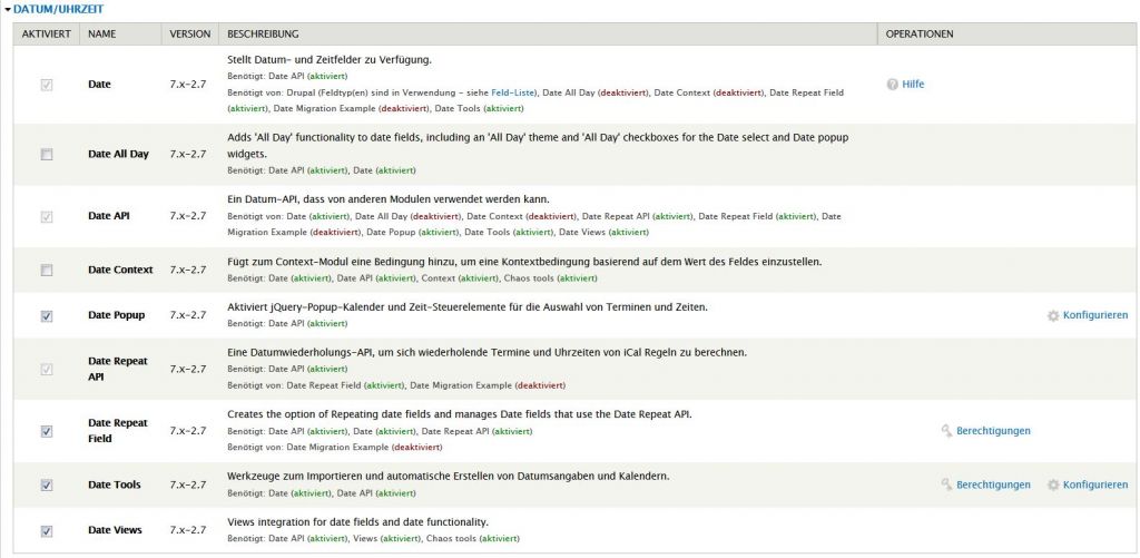 Und jetzt noch beim Datum dafür sorgen, daß unter "Multiple field settings" kein Haken bei "Alle Werte in der selben Reihe anzeigen" vorhanden ist und die Wiederholungsregel versteckt ist.