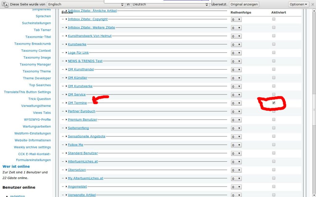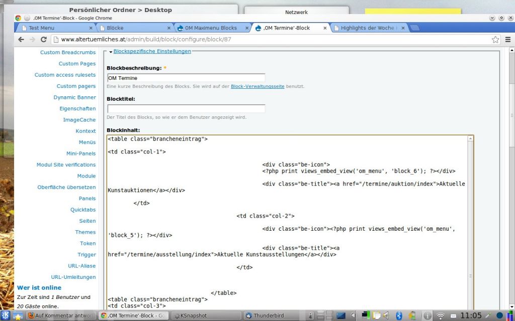 Beispiel: zum Menupunkt Termine ist der Block 87 zugeordnet und diesen würde ich gerne über die tpl.php Datei Themen...