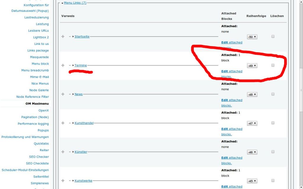 Das Problem ist der korrekte Block Namen, in Moment löse ich es über die direktes Themen über admin/build/block ich würde aber gerne über die tpl.php Datei die Menupunkte bzw. bei Mousover den Block Themen, der über om-maximenu zugeordnet wird.