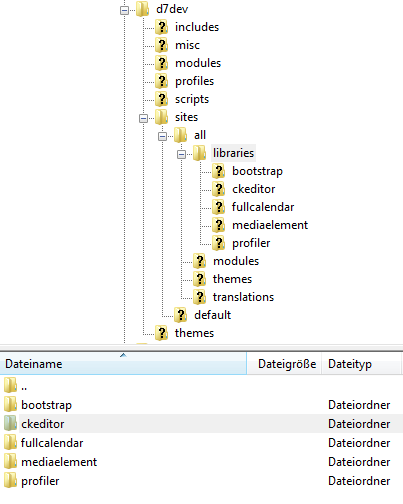 Der Ordner "libraries" kann via FTP (bspw. Filezilla) im Verzeichnis "all" manuell erstellt werden.