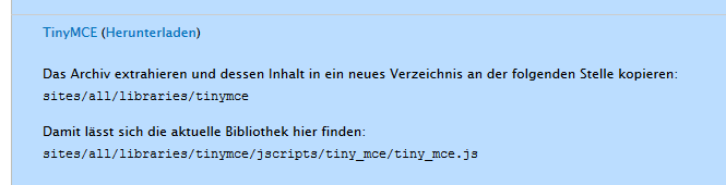 Ich bin dabei das WYSIWYG-Modul zu installieren um Bilder in Inhalte zu fügen. Bei TinyMCE soll ich ja in sites/all/libraries installieren.