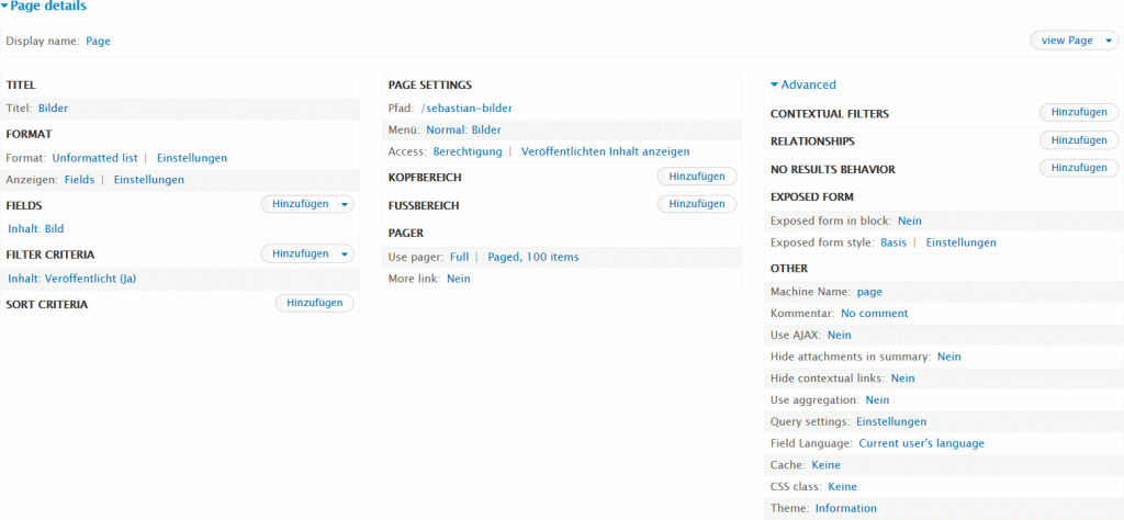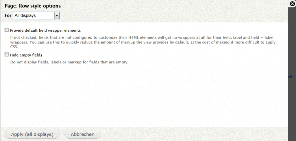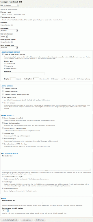 Anzeigen Fields Settings: