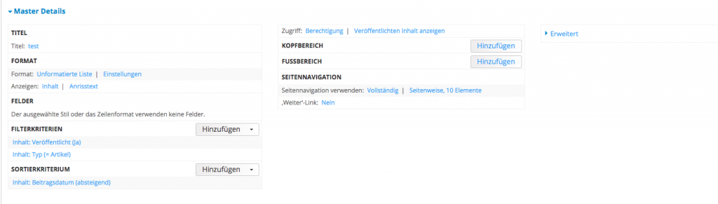 Diese Ansicht kannst du als Seite oder als Block speichern, danach hast du deine ganzen Artikel auf einer Seite mit den Anrisstexten und einem "more-link".