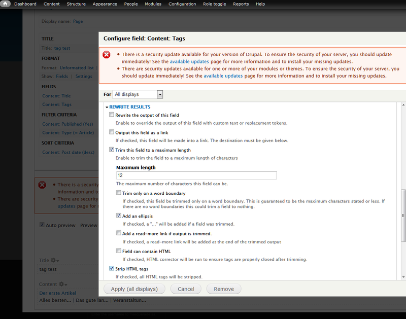Besteht dein Feld auch aus Taxonomiebegriffen und kannst du das Auslassungszeichen ... sehen, bzw. werden deine Begriffe ab maximaler Wortlänge gekürzt?