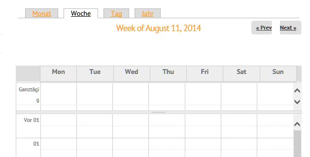 Formatierung der Wochen- und Tagesansicht im Modul Calendar