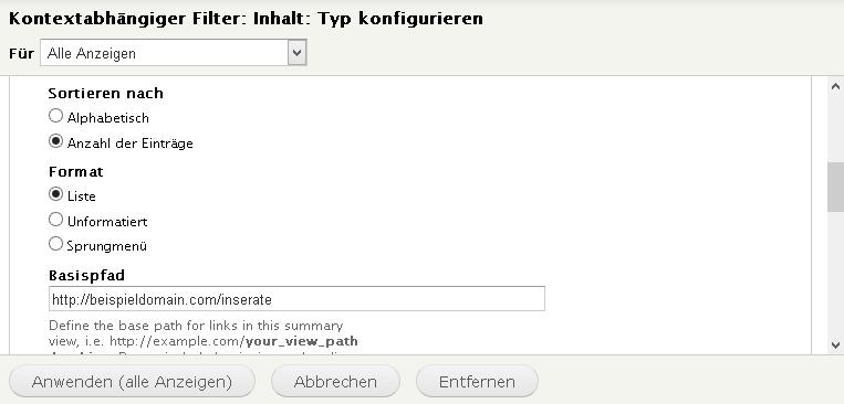 Bei dem Punkt Basispfad will ich auf http://beispieldomain.com/inserate verlinken.. aber der Link führt immer auf http://beispieldomain.com/anzeigen/opel .