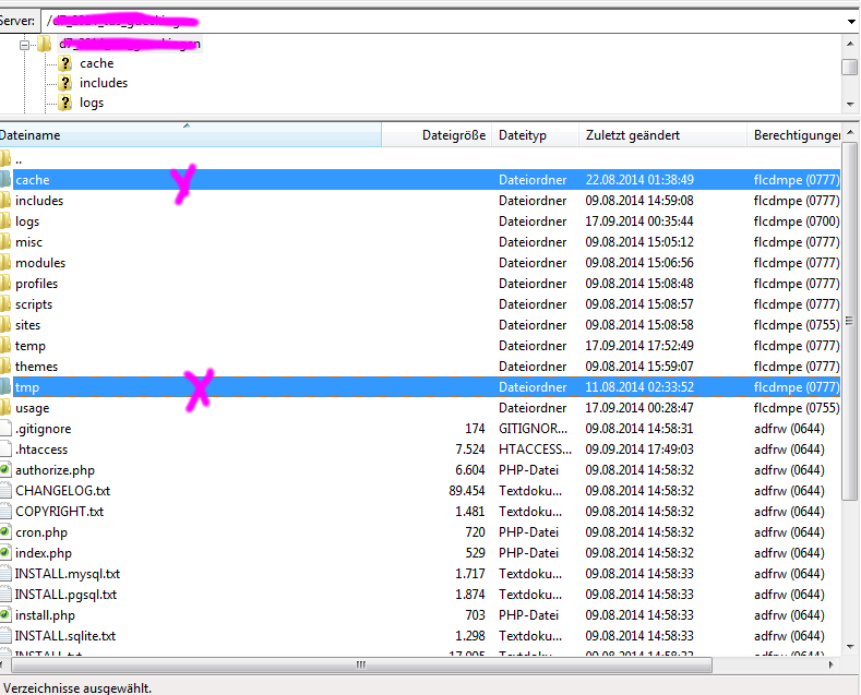 5.) Lege auf dem Server die Verzeichnisse an "temp" und "cache" - siehe Bild Anhang. - CMD 777