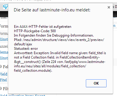 (Zeile 585 von /lasfjqdq/www.MeineWebsite.at/modules/field/modules/field_sql_storage/field_sql_storage.module).Wenn ich das fragliche Feld in einem neu angelegten FieldCollection-View anlegen will erscheint ein "Ajax.HTTP-Fehler". Siehe Anhang.