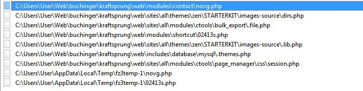 Natürlich hat der Bot nicht alle Kopien aufgerufen bzw. versucht zu aktivieren. Z.B. die im vorher erwähnten Installations-Quellverzeichnis der Drupal Version 7.32 in einem Unterverzeichnis, wo er ebenfalls PHPs hineinkopierte, hat er nicht versucht aufzurufen (EDIT: s.u.). Es sollte jedem wie auch mir klar sein, dass immer noch Dateien vorhanden sein können, die nur nicht aufgerufen wurden.
