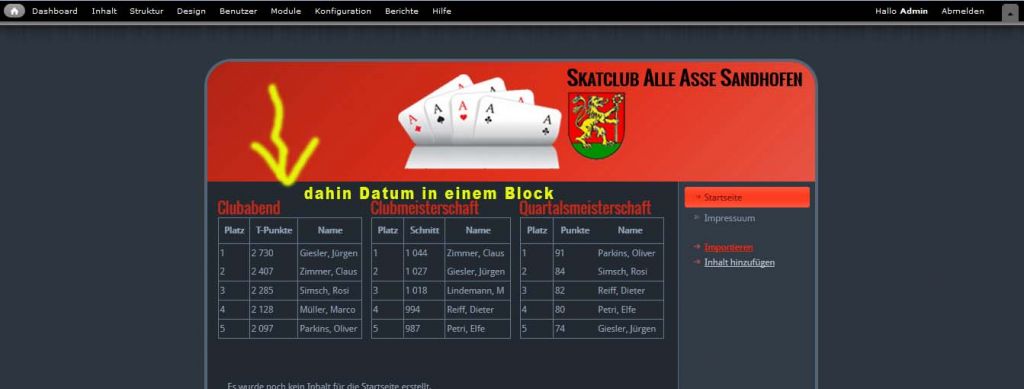 jetzt will ich nur das das Datum oberhalb der angezeigten Viewblöcke ein anderer Block/Page ein Datum steht von wann die Ergebnisse sind. aber NICHT das Postdatum, weil das hochladen an einem anderen Tag geschied.
