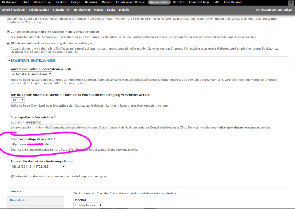 Es lässt sich aber nur eine Standardmäßige Basis-URL eingeben !