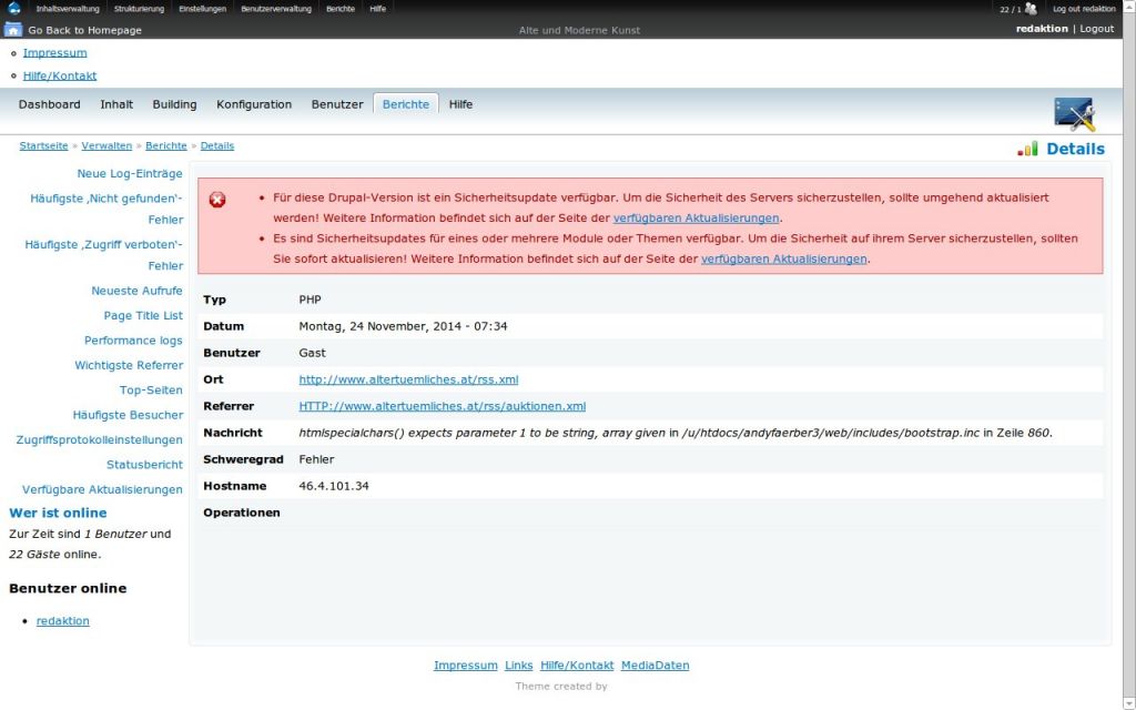 Was mir eher Sorgen bereitet sind massig Zugriffe auf die Website.