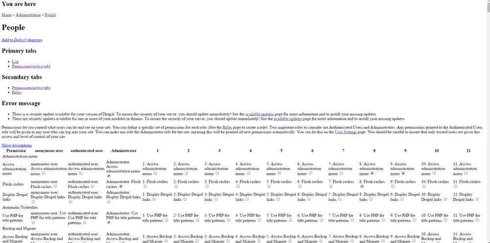 ich benutze das Administrationtheme "Seven". Neulich habe ich gemerkt, daß ab 10 Rollen die Übersichtsseite der Permissions (...?q=admin/people/permissions) nicht mehr korrekt angezeigt wird.