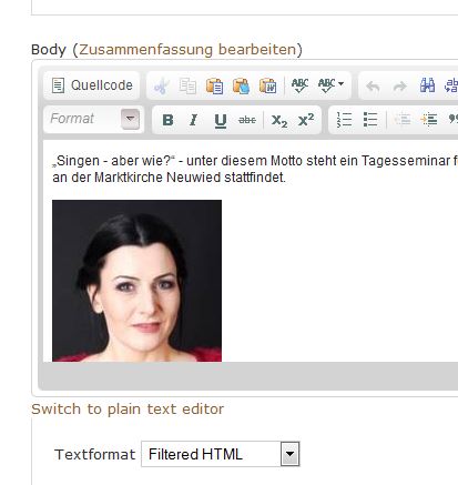 Dazu wird der CKEditor verwendet. Klappt auch alles gut.
