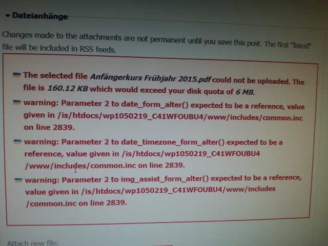 ich habe ein Problem beim Upload von Dateien, resp. PDF. Ich bekommen nachdem ich den Attach-Knopf gedrückt habe und eine kurzer Moment des Uploads vergangen ist stets die Fehlermeldung: