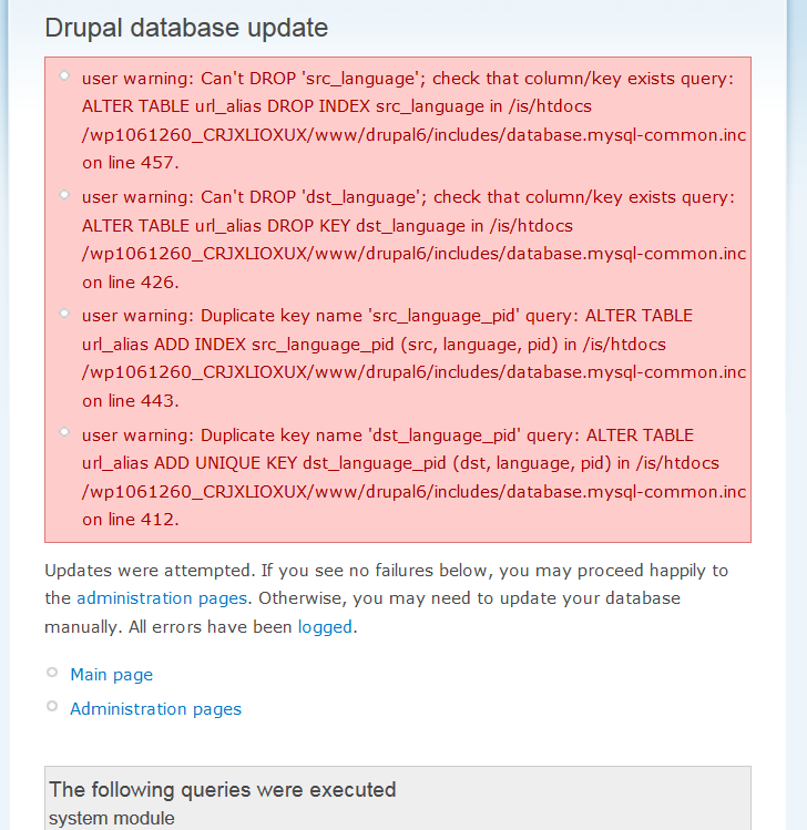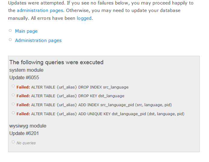 Irgendwelche Fehlermeldungen im Apach - oder Drupal - Log?