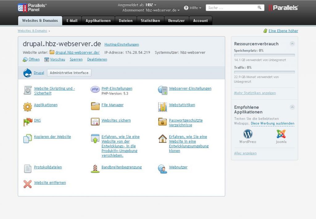 Leider können wir für durch Sie selbst installierte Webanwendungen wie bspw. Drupal keinen Support leisten.