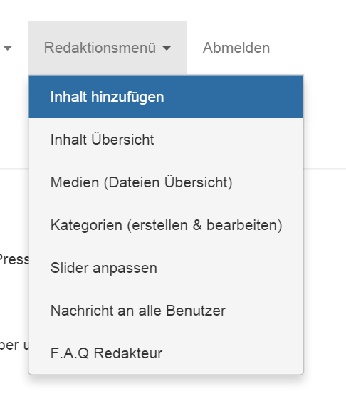 Es gibt im Hauptmenü ein eigenes Redaktionsmenü. Wenn man als Redakteur nun auf die Seite des Inhalts geht, funktioniert das Dropdown Menü aber nicht mehr.