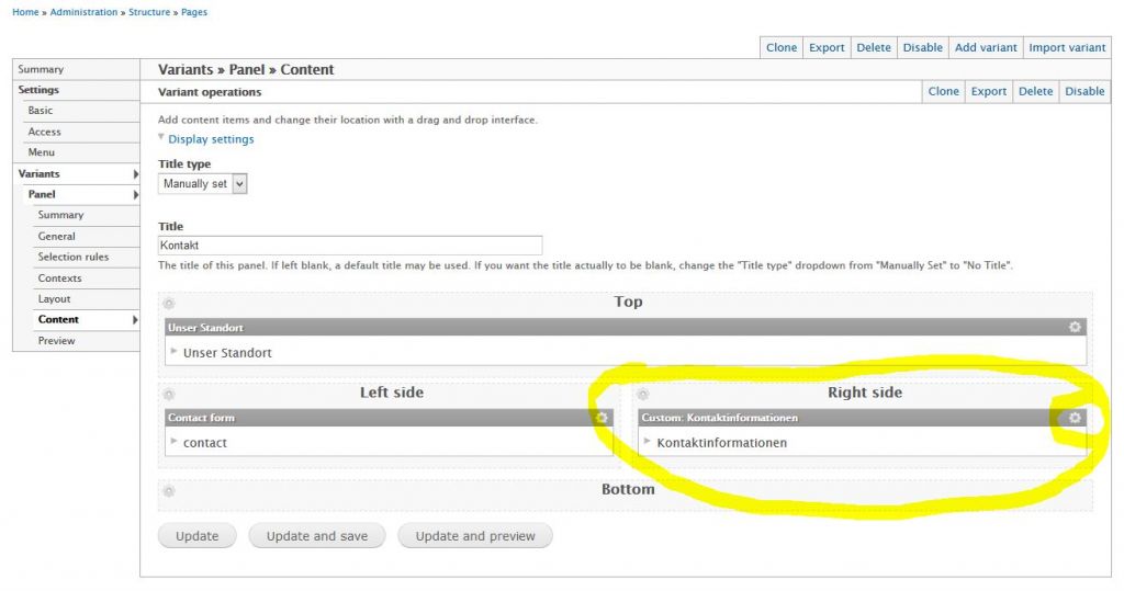 Variants » Panel » Content -> Editieren funktioniert nicht