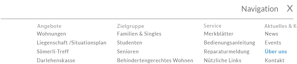 In smartphone version, ist die Navigation dann aber geschlossen nur über die die Hauptpunkt aufklappbar. Ich hab mir gedacht das ich hier ja die Hauptnaviepunkte brauche für diese Struktur.