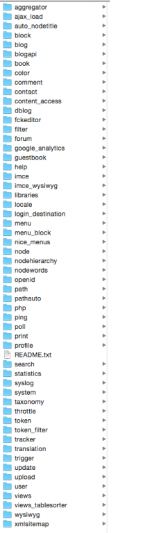 drupal_1.png zeigt alle Module, die im Verzeichnis /modules/ unter Drupal 6 installiert gewesen sind.