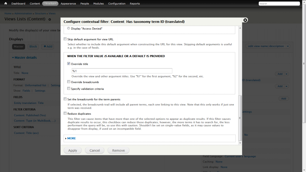 um ueber context filter den titel des Term auszugeben habe ich %1 eingegeben: und das funktioniert auch. Sofern aber das 2. vocabulary einen Term hat, wird dieses 2. als Ueberschrift ausgegeben, obwohl sich alles auf 1. vocabulary bezieht.