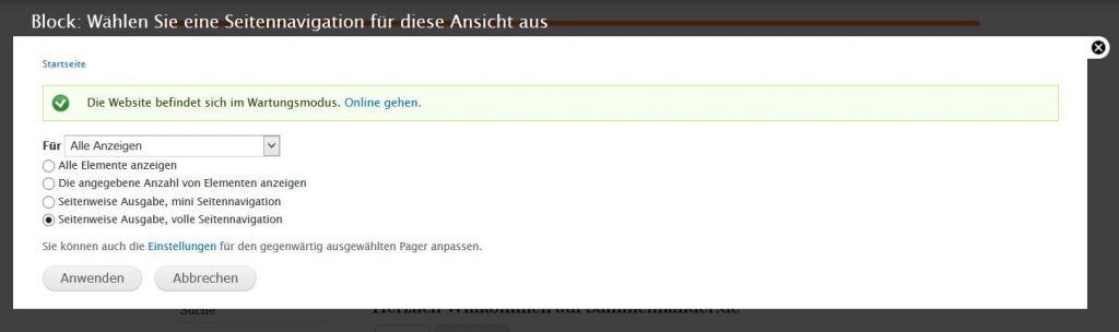 Wenn man sich über die Navigationsleiste zum Beispiel auf die Seite 2 der Ansicht begibt, schaltet die zweite Ansicht entsprechend mit um.