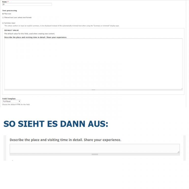 Ich bekomme nach einer stark modifizierten Theme meine Textfelder nicht mehr größer. Mit größer meine ich nicht die Textlänge / Anzahl Rows, sondern wie sie defaultmäßig dargestellt wird in der Größe. Der User muss die Box immer mit der Maus aufziehen, um mehr Text zu sehen. Siehe Bild (ist ein long text and summary field).