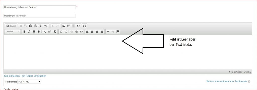 Zeigt er dir denn den Inhalt an, wenn du das Texteingabeformat änderst oder den WYSIWYG deaktivierst ?