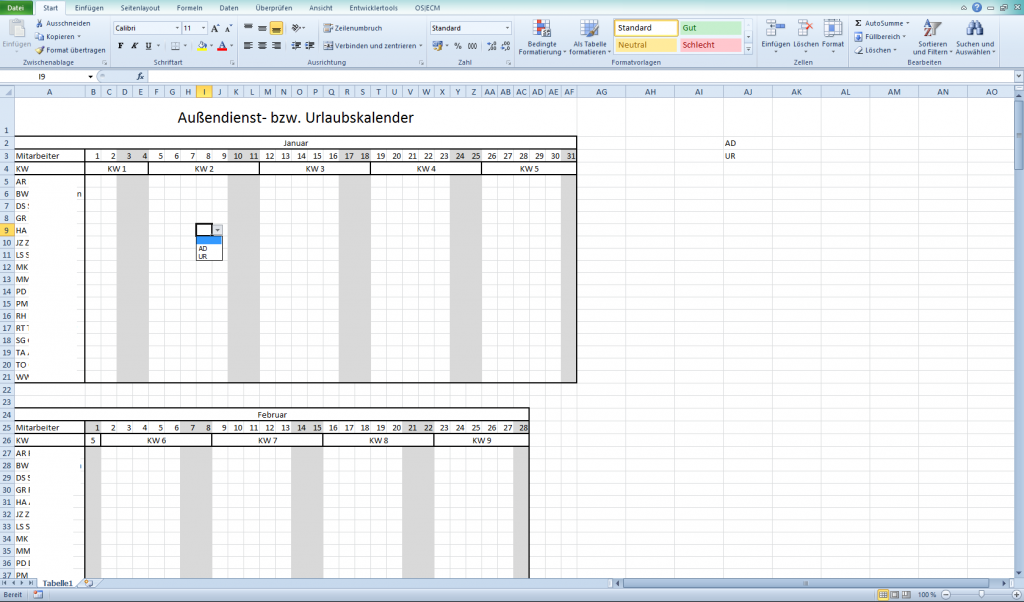 Im Prinzip suche ich nach einem Kalender, der für jeden Mitarbeiter anzeigt, ob dieser da (leer, grün, oä), im Uralub oder auf Dienstreise bzw. Außendiest ist.