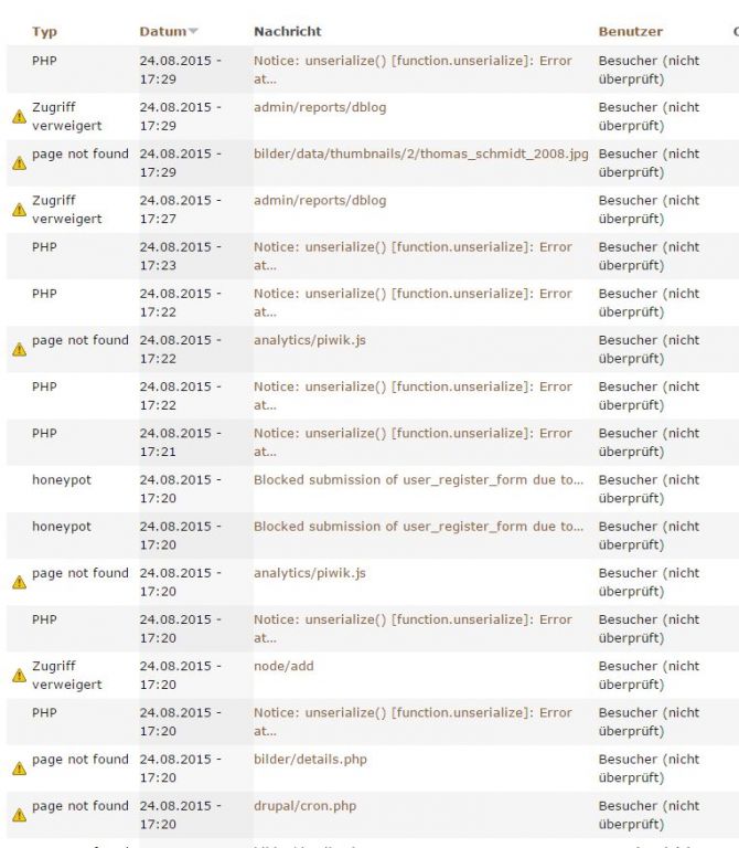 Ich gehe jetzt mal Berichte/Recentlog Messages durch. Da steht so allerhand ...