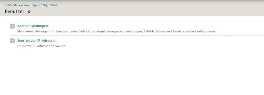 Diese Konfigurationsmöglichkeit wird mir aber dort nicht angezeigt und auch wenn ich im Modul-Menü auf die Konfiguration des Captchas klicke, werde ich auf die Konfigurationsseite für Benutzer geleitet, kann dort aber nur Kontoeinstellungen und die Sperrung von IP-Adressen einstellen.