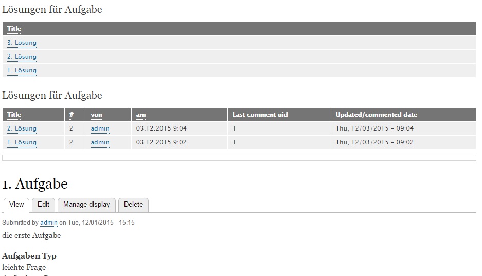Ich habe View in der ich eine Liste mit Nodes anzeige. Zusätzlich zeige ich noch die Anzahl der Kommentare und das Datum und User des letzen Kommentars an.