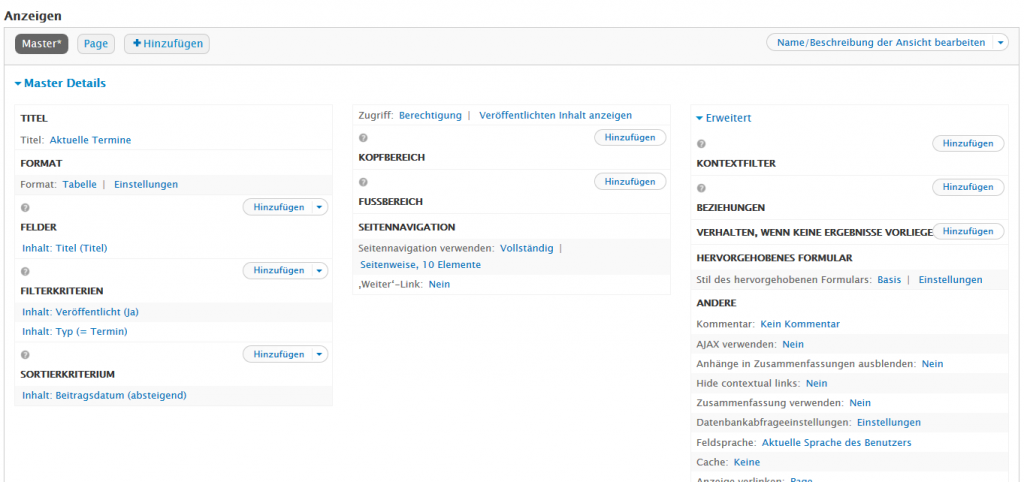 kann einen neuen View erstellen, ich kann aber keine Änderungen bei "Page Details" (siehe Bild).